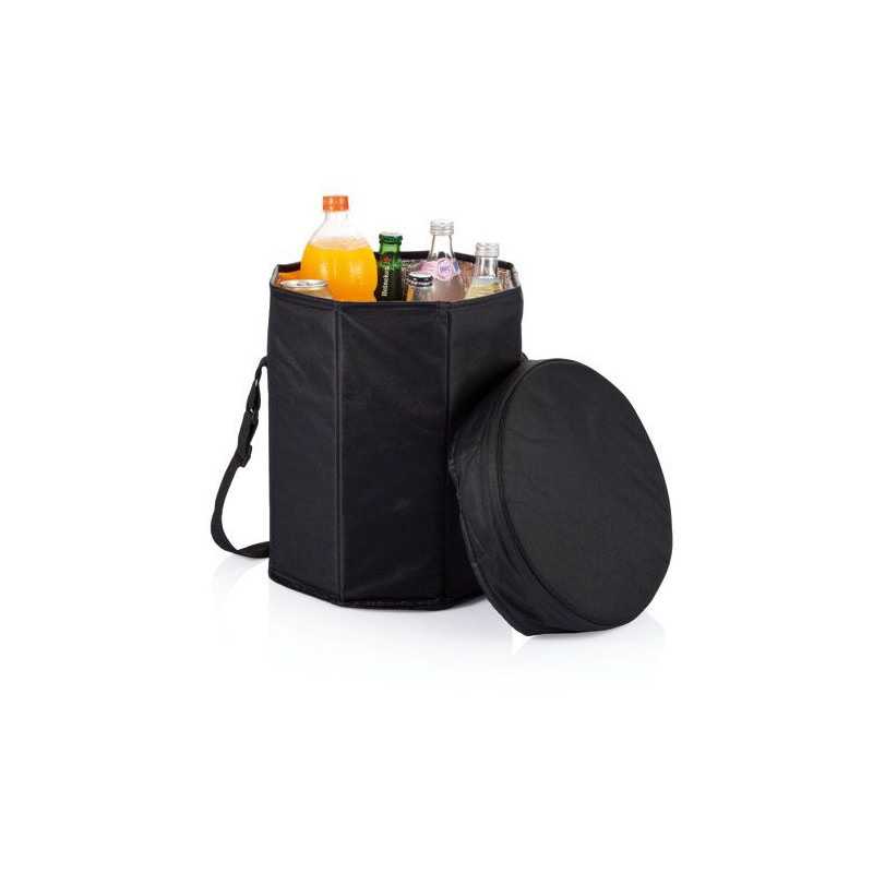 Great for the outdoors. A cooler that is a seat as well. Can support up to 90Kgs and holds up to 24 cans. Insulated liner. Ultra portable folds completely flat for storage.  Manufactured from 600D Polycanvas.