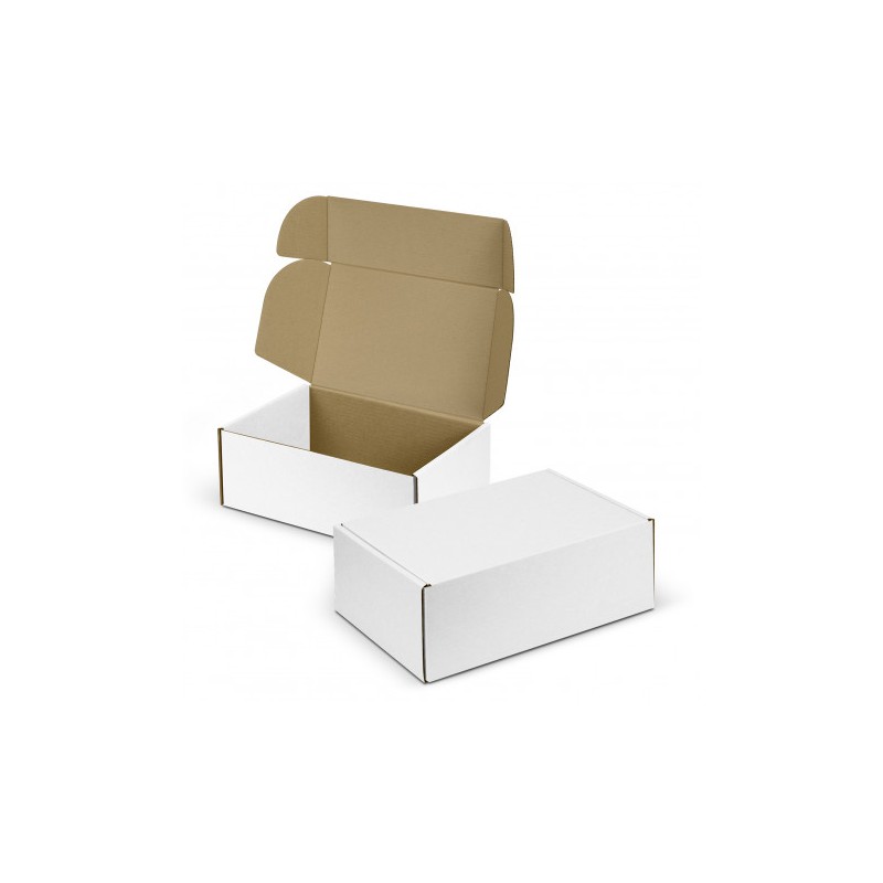 Professional custom presentation box made from durable 3mm e-flute corrugated cardboard to provide reliable protection during transit. This large box is perfect for gifting and building strong brand recognition. Featuring a convenient hinged lid, selected panels of the box can be customised with CMYK digital print. It is supplied flat-packed for easy postage and storage, and its self-locking design ensures hassle-free assembly. The assembled internal dimensions are 360mm x 260mm x 134mm (LxWxH).