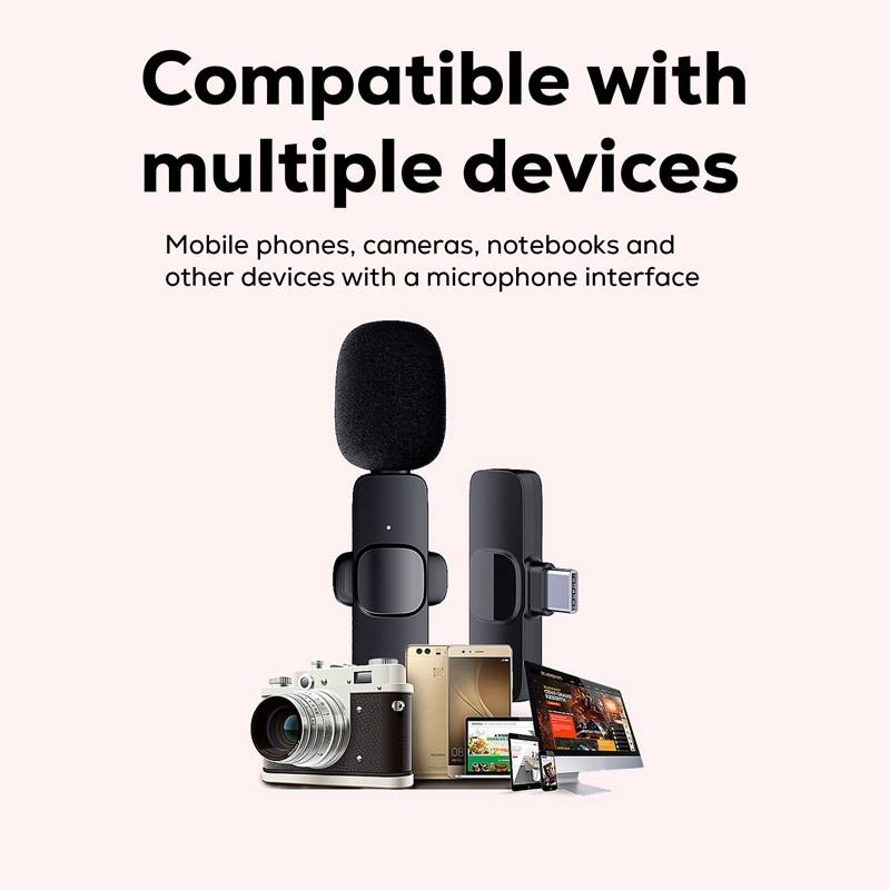 Try the Lido Pro Wireless microphone and enjoy the hands-free, high-performance microphone that works with Type-C and iOS phones. This compact mic with automatic pairing, 360-degree coverage, high sensitivity, and a rechargeable microphone provides a stable signal that can still record clearly in noisy environments. In addition, the Lido Pro with six-hour battery life is ideal for online live broadcast, video recording, public speaking and presentations. This one mic is now compatible with Android and iOS smartphones, tablets and notebooks. Includes a Type-C to Lightning adaptor, Type-C charging cable and user manual. Material: ABS, High-Density Foam. Specifications: Wireless Transmission: 2.4GHz, Microphone Battery Capacity: 70mA, Frequency Response Range: 20-20KHZ, Signal-to-Noise ratio: 64dBm, Sampling Rates: 48 KHz, Operating Distance: 20 metres, Working Time: 6 Hours, Charging Time: 1-1.5 hours. Certifications: CE, FCC