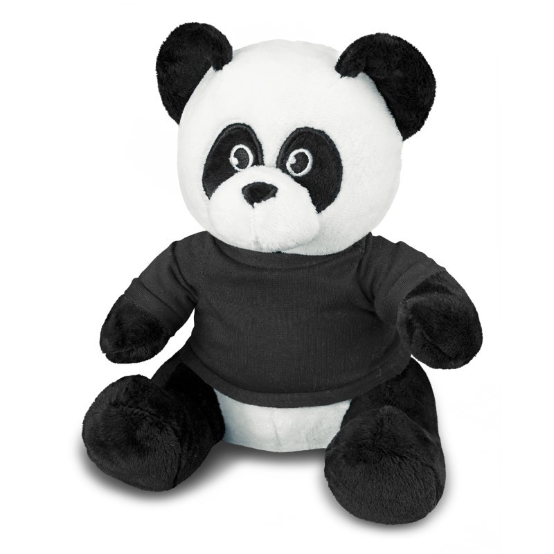 Soft panda plush toy with embroidered eyes and a polyester t-shirt which is available in eleven colours. Plush animals provide a cute and cuddly branding option and are great for brand recognition and spreading goodwill.