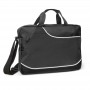 Centrix combines superb design and functionality to produce a smart yet very affordable conference or business bag. It is manufactured from 600D polyester and has carry handles as well as an adjustable shoulder strap. Other features include a curved slip pocket on the front, a handy elastic pen loop, trendy white piping and a business card holder on the back.