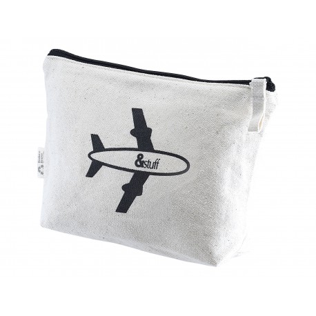 &Stuff is a range of user-friendly products designed with the environment in mind. All of the items in this on-trend range are hand made from 100% natural unbleached calico cotton and are durable, washable and reusable. Calico Travel Pouch is ideal for keeping all your travel documents and accessories safe and secure. Ideal for storing your passport, boarding pass, travel cash, itinerary, battery charger and charging cables. Your logo can be printed or debossed on one side of the pouch with our &Stuff icon printed on the reverse side. Options - select either: (1) natural or black coloured zip, (2) natural cotton zip puller or leatherette zip puller, (3) debossed logo onto the leatherette badge or screen printed directly onto the calico material (additional charges apply for some of these options - see below).