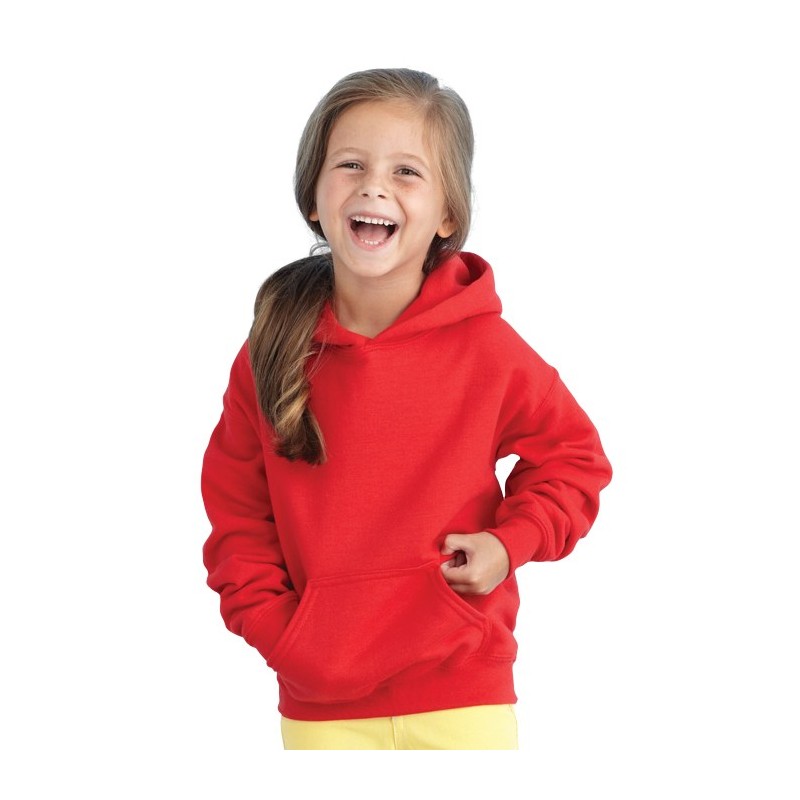 50% Cotton / 50% Polyester preshrunk yarn, 279 g/m² (262 g/m² in White), Air jet yarn = softer feel and no pilling, Double-lined hood, Double needle stitching, Pouch pocket, Double needle cuffs, 1 x 1 athletic rib with spandex, Quarter-turned to eliminate centre crease, CPSIA Tracking Label Compliant