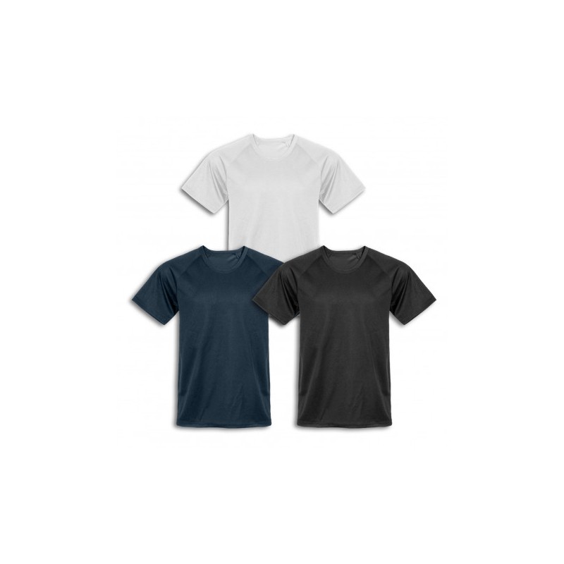 Moisture-wicking mens sports t-shirt made from 180gsm polyester mesh fabric. It is lightweight, breathable and fast-drying with raglan sleeves, perfect for activewear. Stitched hems and cuffs add strength and structure to the garment. The tee uses Australasian sizing and is available in eight sizes.