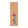 Set of 6 mini coloured pencils in rectangular natural kraft box with removable lid. Eco Credentials. Sustainable. Recyclable, Printed using reusable energy.