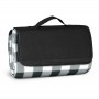 1200mm x 1370mm woven polyester fleece picnic blanket with a water-resistant PE backing. It folds up after use with a Velcro closure and has a handy carry handle.