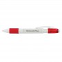 Retractable plastic ballpoint pen with a white barrel, a soft rubber grip and a rotating inner barrel which holds six different messages. Each time the push button is clicked, a new message is displayed in the two clear barrel windows. It has a blue or black refill with 1200 metres of German manufactured Dokumental ink. A production lead time of 40 working days applies to this product by air freight and orders can be sea freighted on request to reduce the freight cost.
