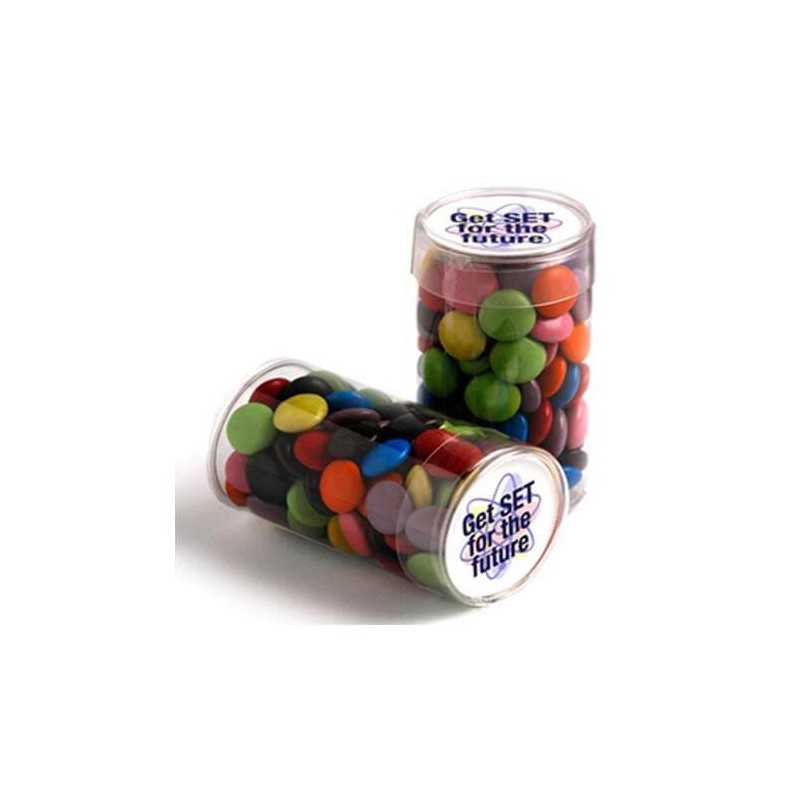Promotional Promotional Chocolates,get branded logos on the 100g Chocolate Beans Packed in Pet Tubs