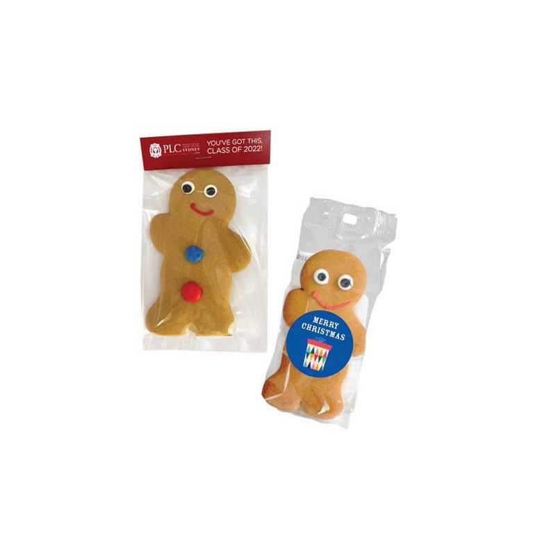 Promotional Cookies & Biscuits,get branded logos on the 50g Gingerbread Man Cookie Packed in Cello Bags
