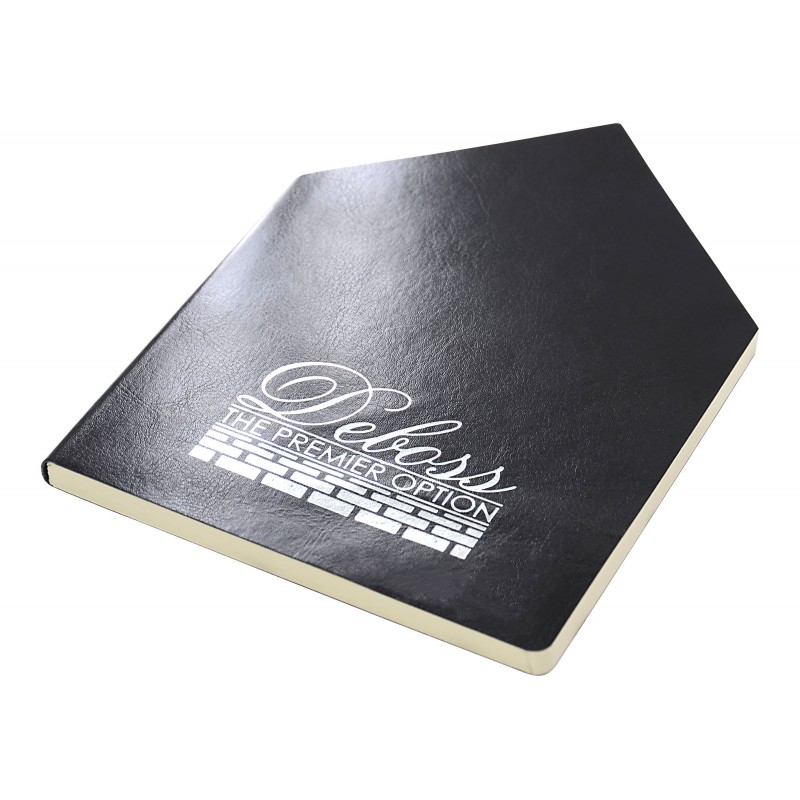 The House A5 Notebook is a perfect gift for the real estate, construction and home services industries. Crafted in the shape of a house, this notebook features a leather-feel soft cover, stylish flush-cut design and 160 pages of lined cream paper. These notebooks are available in Black with decoration options such as Pad Print, Deboss or Gold/Silver Foil Printing. If youre after a debossed notebook, check these out!