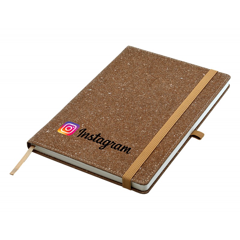 These stylish A5 notebooks are guaranteed to receive attention. Featuring a natural coloured Bonded Leather hard cover with edge stitching, 9mm wide natural coloured elastic closure, pen loop, marker ribbon and 192 pages of high quality cream paper. Notebook Gift Box is optional extra - see W17. LOGO TAG OPTION: Our latest decorating technique for this notebook is the addition of a LogoTag. Made from solid acrylic in the shape of your logo and printed in full colour, Logo Tag will transform the ordinary into the extra-ordinary. Once applied to our notebooks, Logo Tag can be used on its own to promote the brand or additional printing can be added to the notebook – the choice is yours.