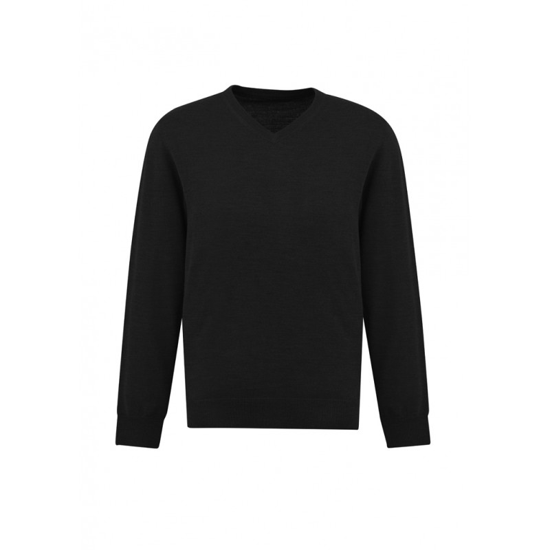 Mens classic fit V-neck with relaxed ribbed cuff and hem thats not too tight or loose. Fabric: 50% Merino Wool, 50% Acrylic - 14 Gauge,Machine washable on wool setting.