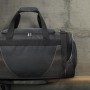 Superior large duffle bag which is manufactured from gunmetal coloured 600D polyester with decorative black ripstop nylon accents and smart silver piping. It has strong woven carry handles with a Velcro cuff and a woven shoulder strap which is adjustable and removable. Excelsior has two zippered external pockets, one of which is a shoe bag that can also be used for wet gym gear etc. Other features include an external mesh pocket, a sturdy internal base board and strong external plastic feet.