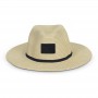 Classic paper weave wide brim hat with a coloured polyester ribbon, featuring a patch for convenient and prominent branding.