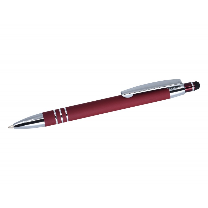 This classic metal stylus pen features a soft-feel rubber coating, chrome trim and top-mounted stylus. Available in black, blue, red or green.