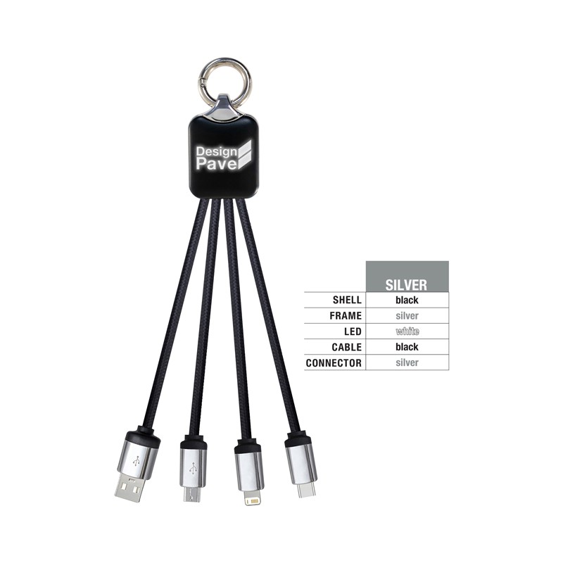 Promotional USB Hubs & Cables,get branded logos on the Atesso 3n1 Light Up Charge Cable - Rectangle